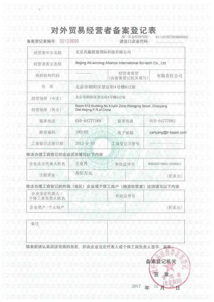 郵箱:carlyang@tr-baast.com