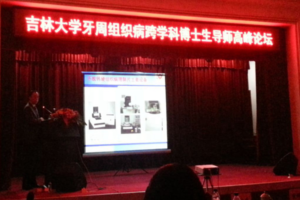 ? ? ? ?2012年12月22日,我公司應(yīng)邀參加了吉林大學(xué)口腔醫(yī)學(xué)院舉辦的“牙周組織病跨學(xué)科博士生導(dǎo)師高峰論壇”。會(huì)議邀請(qǐng)了首都醫(yī)科大學(xué)王松靈教授、南方醫(yī)科大學(xué)章錦才教授、北京大學(xué)孟煥新教授、武漢大學(xué)李成章教授、山東大學(xué)楊丕山教授、中國(guó)醫(yī)科大學(xué)潘亞萍教授、哈爾濱醫(yī)科大學(xué)畢良佳教授、中國(guó)人民解放軍總醫(yī)院王東勝主任技師、吉林大學(xué)于永利教授、周慧教授、周延民教授、孫宏晨院長(zhǎng)等國(guó)內(nèi)著名專家。