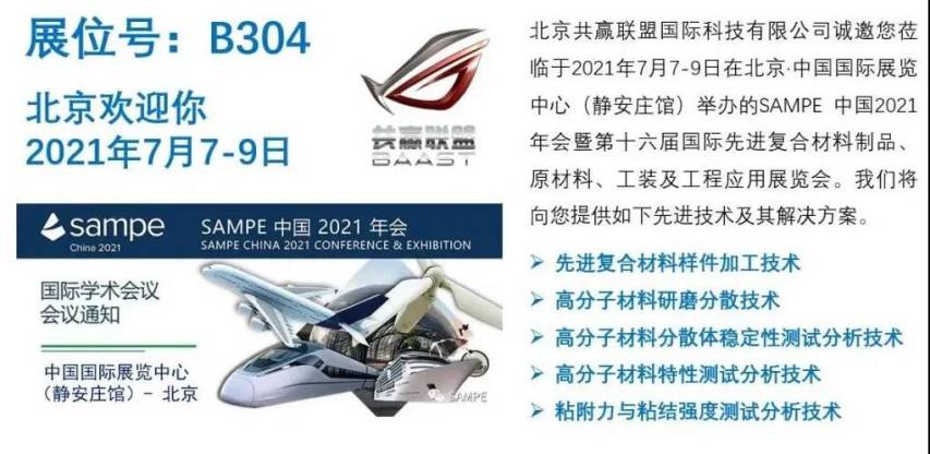 北京共贏聯(lián)盟國(guó)際科技有限公司誠(chéng)邀您蒞臨于2021年7月7-9日在北京·中國(guó)國(guó)際展覽中心(靜安莊館)舉辦的SAMPE 中國(guó)2021年會(huì)暨第十六屆國(guó)際先進(jìn)復(fù)合材料制品、原材料、工裝及工程應(yīng)用展覽會(huì)。展位號(hào):B304