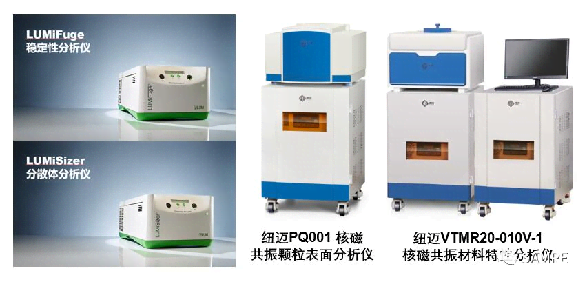 ● 德國(guó)LUM系列分散體穩(wěn)定性測(cè)試分析儀器?利用STEP技術(shù),采用了線光源和檢測(cè)器檢測(cè)分析整個(gè)樣品管。通過檢測(cè)樣品在任一選定位置上的所有時(shí)間或者在任一選定時(shí)間點(diǎn)上的所有位置的透光率,來檢測(cè)樣品中顆粒的移動(dòng)情況,以此為基礎(chǔ)來分析樣品的分散穩(wěn)定性以及顆粒表征。它是可以對(duì)整個(gè)樣品從上到下同時(shí)觀測(cè)及分析的技術(shù)。在復(fù)合材料領(lǐng)域的應(yīng)用方向包括:磨料磨具/炭黑/碳納米管色膏/精細(xì)化學(xué)品/燃料電池/石墨烯/納米分散體/聚合物/以及更多液態(tài)和膏狀分散體系的材料。儀器配置強(qiáng)大的SEPView軟件,集成了多種分析模塊,提供多達(dá)7種分析手段。根據(jù)不同的樣品,可檢測(cè)分析:①測(cè)試穩(wěn)定性;②粒徑分布;③沉降/上?。虎艹吻逅俾?;⑤預(yù)測(cè)產(chǎn)品保存期;⑥制定產(chǎn)品特征圖譜;⑦觀察絮凝/團(tuán)聚現(xiàn)象;⑧沉降層/懸浮層厚度及緊密程度;⑨研究膠體結(jié)晶化;……?●?紐邁PQ001核磁共振顆粒表面分析儀?是一款專用于測(cè)試懸浮液顆粒濕式比表面積的分析儀器,可評(píng)價(jià)懸浮態(tài)液體的顆粒與溶劑之間的分散性、親和性、潤(rùn)濕性等,還包括研磨工藝評(píng)價(jià)、不同設(shè)備分散效果評(píng)價(jià)、配方篩選、顆粒/有機(jī)載體/溶劑/助劑等檢測(cè)。配有專業(yè)的測(cè)試軟件,測(cè)試方便快捷,軟件操作人性化,確保高效的測(cè)試效率?!?紐邁VTMR20-010V-1核磁共振材料特性分析儀?專用于高分子聚合物材料的基本性能和結(jié)構(gòu)性能的測(cè)試分析。包括定量檢測(cè)彈性體的交聯(lián)密度/增韌劑/橡膠含量/軟硬度比例/玻璃態(tài)轉(zhuǎn)變溫度/活化能/氟含量;硫化過程/固化(固化溫度32℃~130℃可控;)老化過程/降解過程/材料吸濕和干燥過程等控制分析;顆粒與聚合物相容性/顆粒表面改性程度/材料吸附性評(píng)價(jià)/聚合物競(jìng)爭(zhēng)性吸附/親疏水性表達(dá)/分散性能等研究;橡膠均一性研究/內(nèi)部裂縫探測(cè)成像觀測(cè)。廣泛適用于樹脂、橡膠、涂料、膠體等聚合物基體高分子材料。