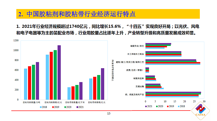 中國膠粘劑和膠粘帶工業(yè)協(xié)會秘書長楊栩介紹了中國膠粘劑和膠粘帶行業(yè)的市場現(xiàn)狀,發(fā)布了行業(yè)各品種的最新統(tǒng)計數(shù)據(jù),系統(tǒng)梳理了膠粘劑和膠粘帶相關政策和環(huán)境變化,并分享了2021年以來行業(yè)經濟運行的十大特點,以及行業(yè)未來的八大展望。