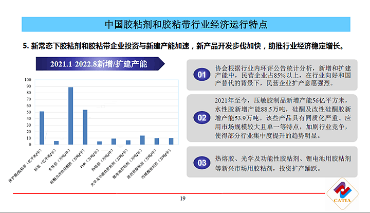2021年,面對復雜嚴峻的國際環(huán)境和艱巨繁重的國內發(fā)展任務,我國膠粘劑和膠粘帶行業(yè)保持了平穩(wěn)快速的增長勢頭,行業(yè)總體銷售規(guī)模超過了1740億元,實現(xiàn)了“十四五”的良好開局。2022年上半年,國內外發(fā)展環(huán)境面臨深刻變化,國際政治經濟形勢更加復雜嚴峻,國內經濟雖然受到疫情多地散發(fā)、大宗原材料價格大幅上漲、物流不暢等超預期因素影響,但我國政府有效統(tǒng)籌疫情防控工作,積極應對各種風險挑戰(zhàn),努力化解困難、疏解瓶頸和堵點。在此背景下,協(xié)會特邀了國內外知名企業(yè)代表和科研院所的專家教授帶來滿滿的干貨,共同探討當前新形勢下我國膠粘劑和膠粘帶行業(yè)的新技術、新熱點、新動向、新機遇,讓行業(yè)內各企業(yè)充分交流、深度溝通、相互學習,共同促進行業(yè)轉型升級和穩(wěn)步發(fā)展。
