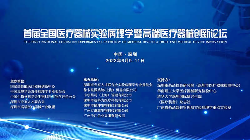 2023年6月9日-11日,首屆全國醫(yī)療器械實(shí)驗(yàn)病理學(xué)暨高端醫(yī)療器械創(chuàng)新論壇在中國深圳舉行,會議圍繞“醫(yī)療器械實(shí)驗(yàn)病理學(xué),F(xiàn)DA、歐盟、CNAS體系GLP條件下醫(yī)療器械安全性評價(jià)規(guī)范化建設(shè)要求,高端醫(yī)療器械創(chuàng)新”等主題開展,邀請藥監(jiān)局領(lǐng)導(dǎo)、資深實(shí)驗(yàn)病理學(xué)專家、醫(yī)療器械研發(fā)科學(xué)家、實(shí)驗(yàn)動物學(xué)家、AI病理診斷學(xué)專家、知識產(chǎn)權(quán)保護(hù)專家以及醫(yī)療器械廠家等國內(nèi)外知名人士共襄盛會。