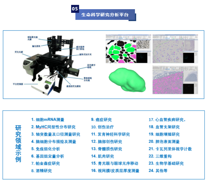 BIOQUANT LIFESCIENCE是由先進(jìn)的數(shù)字掃描顯微鏡與生命科學(xué)研究專業(yè)測量分析軟件組成。能夠?qū)⒉±砬衅瑯颖緩膶?shí)物形式轉(zhuǎn)化為數(shù)據(jù)圖像,用于測量和分析。可以自動采集序列圖片并拼接成可達(dá)1TB的高分辨率單色或多色大圖,具備圖像剪輯、圖像測繪和圖像校正。內(nèi)置生命科學(xué)研究者常用的組織形態(tài)學(xué)數(shù)據(jù)測量模板和計(jì)算公式,自動完成二維和三維形態(tài)學(xué)計(jì)量。應(yīng)用連續(xù)切片實(shí)現(xiàn)組織結(jié)構(gòu)的3D重構(gòu)。還可分析來自Micro CT,2D X-ray,掃描儀,相機(jī)等不同來源的圖像。支持高精度的人工交互操作來得出形態(tài)計(jì)量學(xué)數(shù)據(jù),在現(xiàn)代病理學(xué)、組織工程學(xué)、生物學(xué)和生命科學(xué)研究中,滿足高效率、可存儲、即時(shí)分析、安全共享、教學(xué)、遠(yuǎn)程會診等需求。