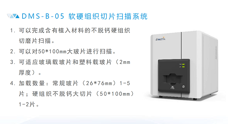 DMS-B軟硬組織切片掃描系統(tǒng),對實(shí)驗(yàn)動物制片、骨腫瘤細(xì)胞、檢驗(yàn)醫(yī)學(xué)等相關(guān)領(lǐng)域軟硬組織制片提供了快速掃描觀測處理的解決方案,不僅能夠掃描常規(guī)石蠟切片,還可以掃描不脫鈣硬組織切片,尤其是含有植介材料的切磨片??焖賿呙鑸D像,利用數(shù)字病理圖像進(jìn)行遠(yuǎn)程病理診斷。
