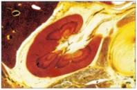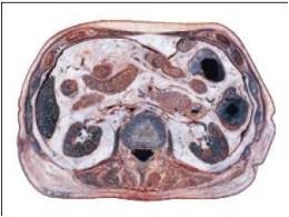 在生物塑化切片的制作中,將硬化處理過(guò)的標(biāo)本與塑化劑固化為一體,將其固定于金剛石帶鋸上,可分別按水平面和冠狀面以無(wú)齒金剛石帶鋸切割。切割方式為點(diǎn)接觸帶式切割,最大橫切面為∮180mm,塑化薄層切片的厚度約為0.2-0.3mm,鋸耗率為0.2~0.3mm,切割弧形擺幅±7°—±28°。斷面標(biāo)本為半透明狀,水平切片和冠狀切片對(duì)骨質(zhì)、肌肉、血管、神經(jīng)顯示均較為清楚,顏色基本無(wú)失真,可觀察組織在斷面上的形態(tài)、位置、大小、毗鄰及走行。組織塑化后,鋸切時(shí)不變形,無(wú)移位、脫落,切面干凈、光滑、平整,組織清楚,置于顯微鏡下還可以觀察放大的組織結(jié)構(gòu)??呻S意保存、攜帶、演示。