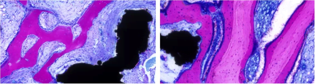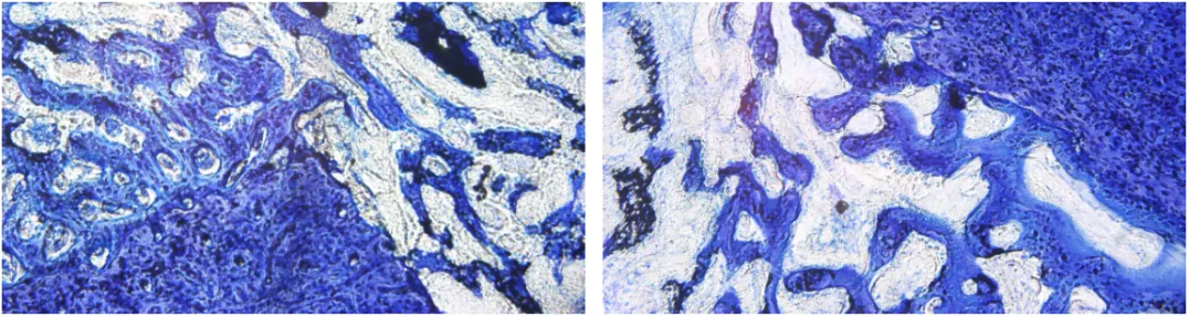 圖4 兔股骨植入(甲苯胺藍(lán)染色)