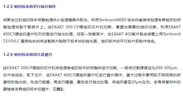 利用該技術(shù)方法制備含骨修復(fù)材料腰椎椎體不脫鈣病理組織切片時(shí),需注意以下細(xì)節(jié):